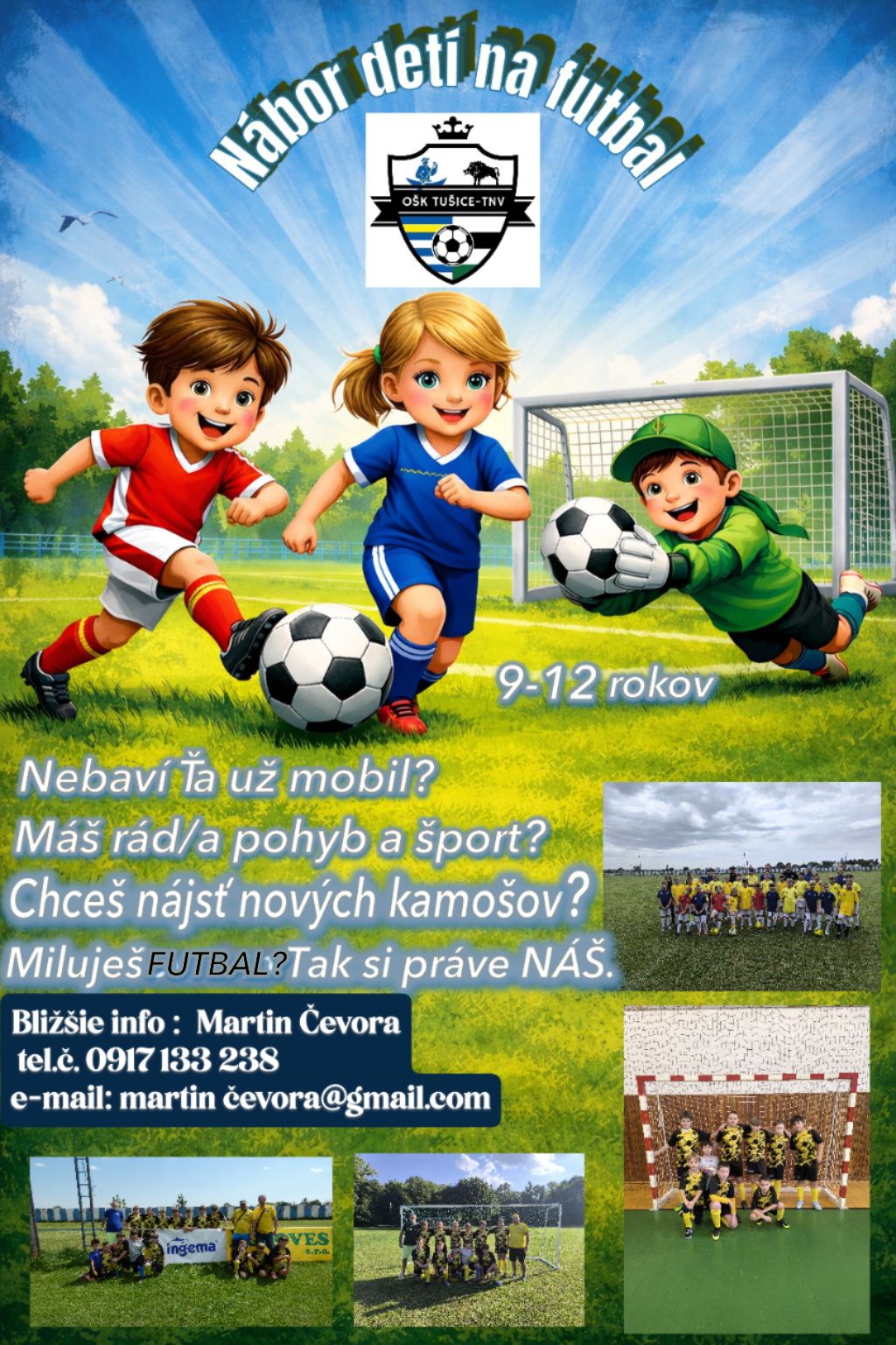 Milí naši rodičia. Vaše ratolesti vo veku 9 - 12 rokov, ktoré milujú pohyb a hlavne futbal, majú príležitosť stať sa súčasťou športovej rodiny futbalového klubu OŠK Tušice - Tušická Nová Ves.